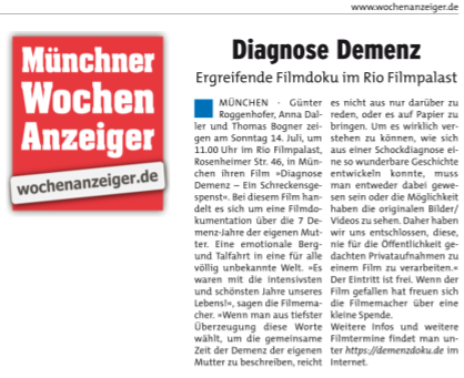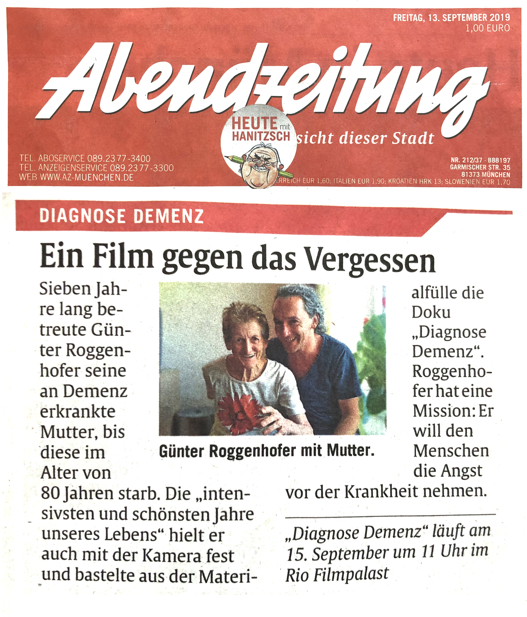 Diagnose Demenz - Ein Film gegen das Vergessen   |   Abendzeitung München 13.09.2019